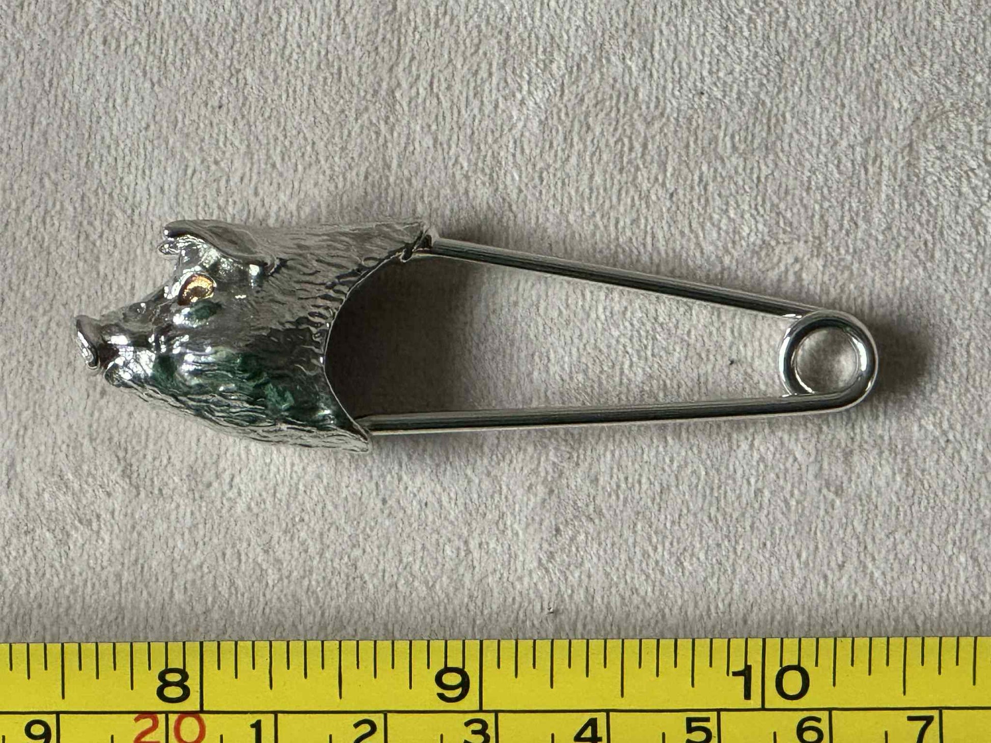 Do you own a kilt like Steve? You can keep it closed with the decorative pig head pin. It can also be used on a jacket or as a closure pin for a shawl.