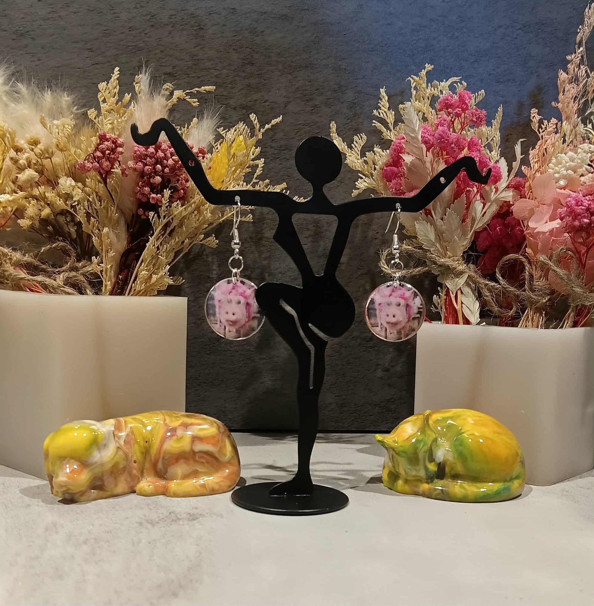 Now you can be a fashionista like Esther when you wear this pendant and matching earrings containing a photo of her all dressed up and ready to go shopping. The earrings are sterling silver. The necklace is silver-tone. Click on the additional photos for close-up views!