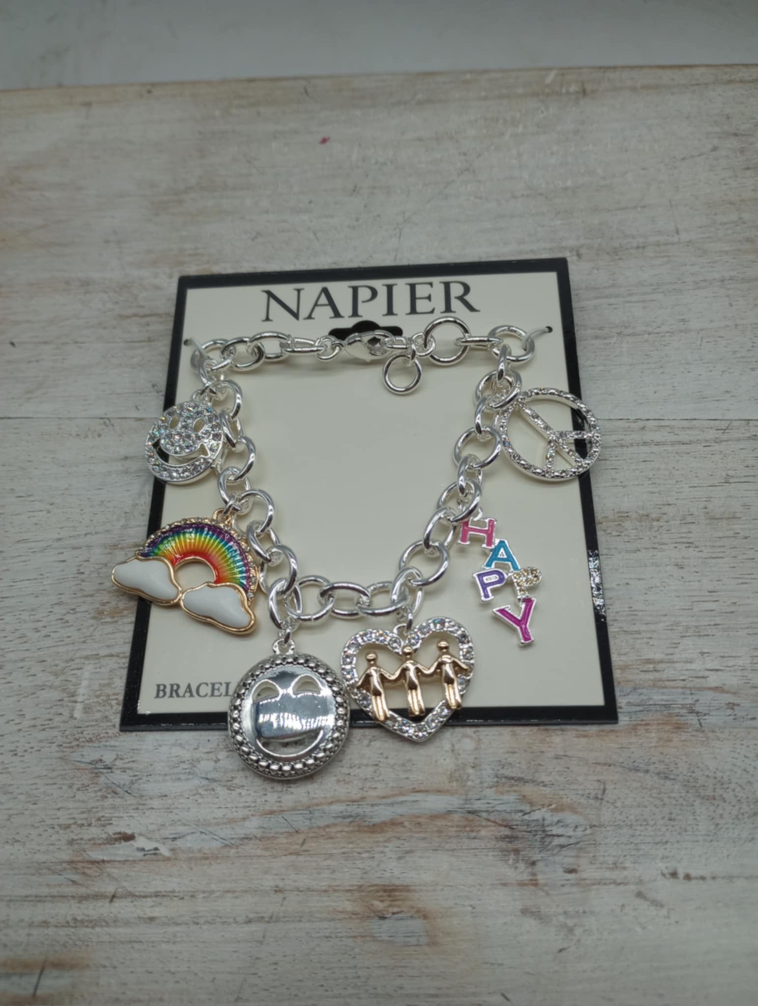 Napier Silvertone Smiley/Rainbow Charm Bracelet