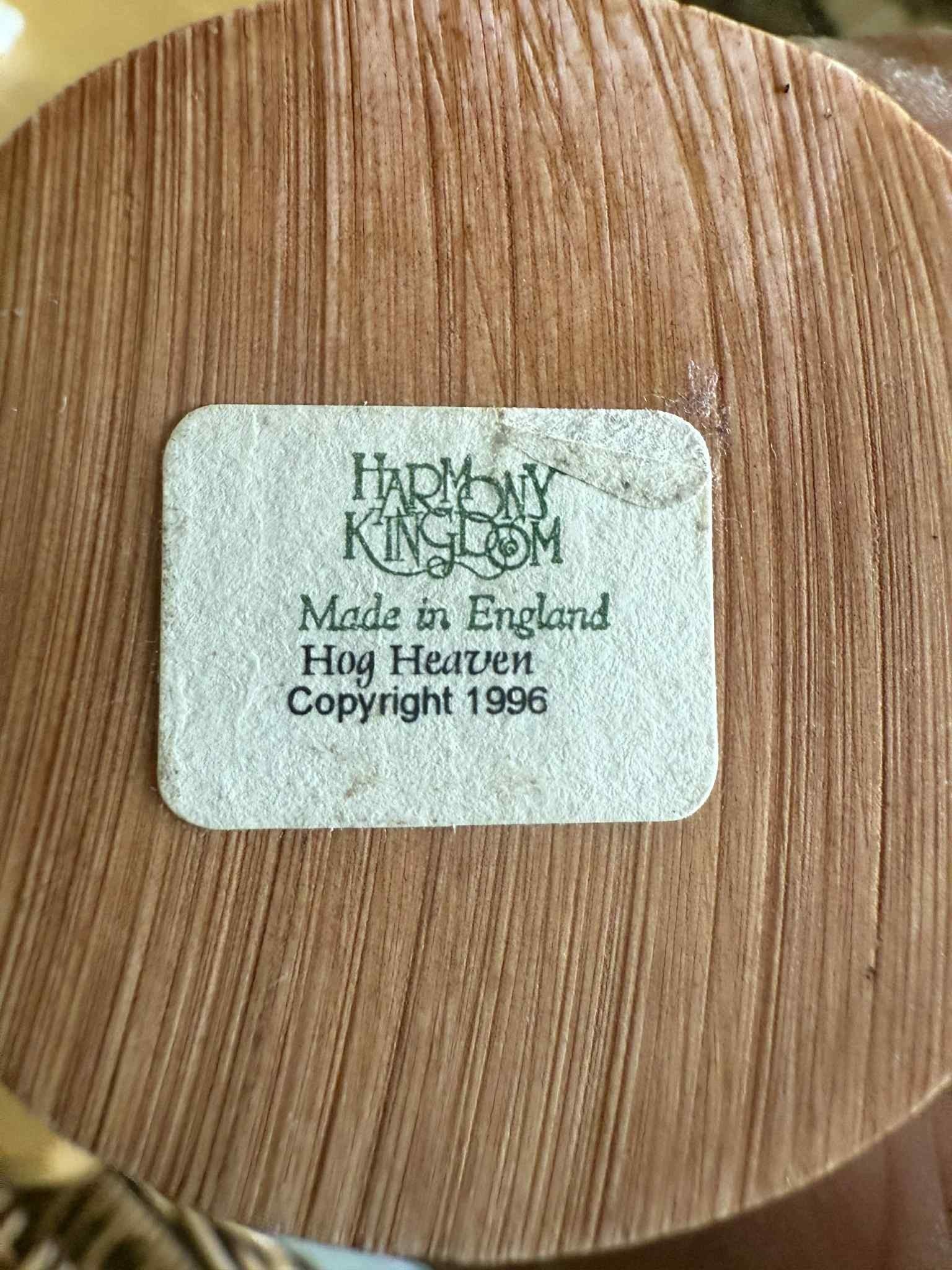 This lovely ceramic trinket box is exquisite with pigs every way you look. Manufactured by Harmony Kingdom.