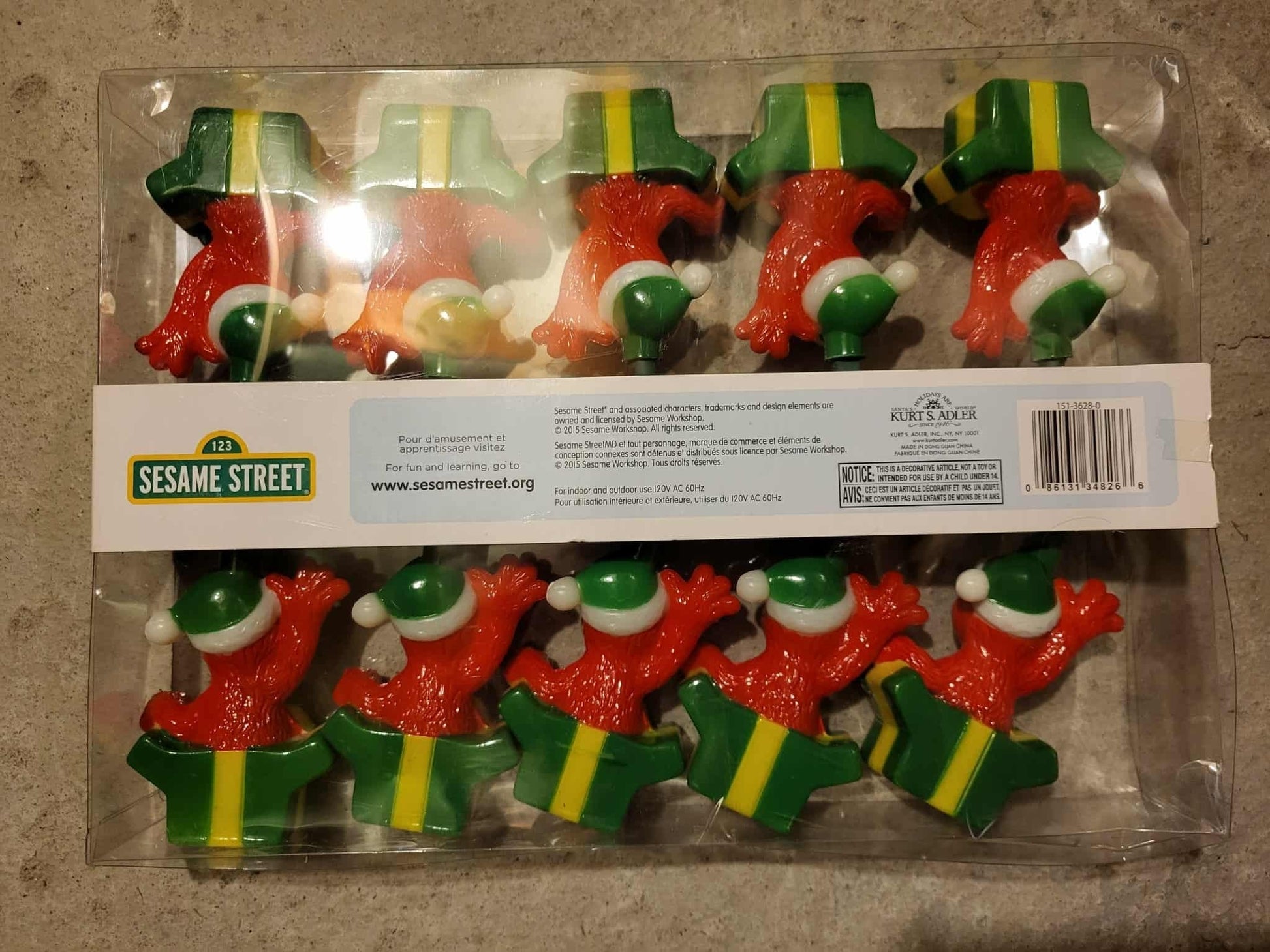 What toddler wouldn't love to see this 10-light string of Elmo lights hanging from his/her personal Christmas tree or on the lower branches of the family tree? From 1998 and in original box. From a Kurt Adler collection. Indoor use only.